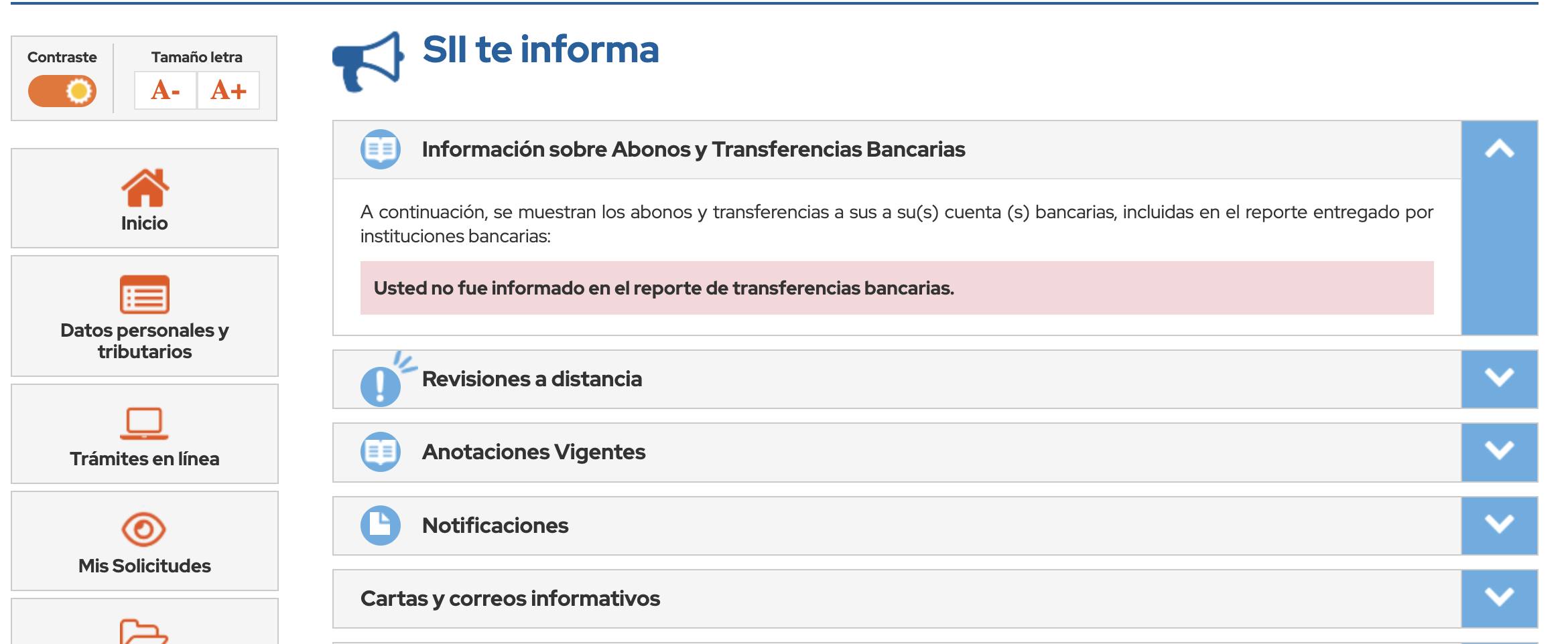 Desde este apartado, los usuarios pueden comprobar si el SII ha recibido información sobre los movimientos de su cuenta durante el período revisado, lo que les permite tener un control claro sobre su situación fiscal frente a esta nueva normativa.